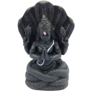 4" Religious Patanjali Statue Composite Stone Black Hooded Serpent Idol