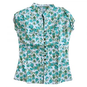 “Cotton Shirt Teenage Blouse Green Floral Print Tops L-23″” has been added to your cart.