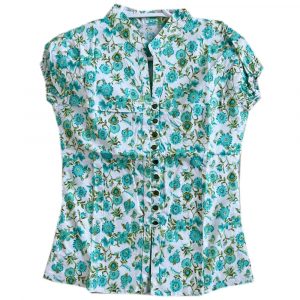 “Cotton Shirt Teenage Blouse Green Floral Print Tops L-23″” has been added to your cart.
